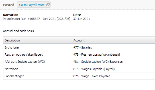 Payrollmate connects directly to your Nmbrs administration and compacts your payroll journals, ready for your review.